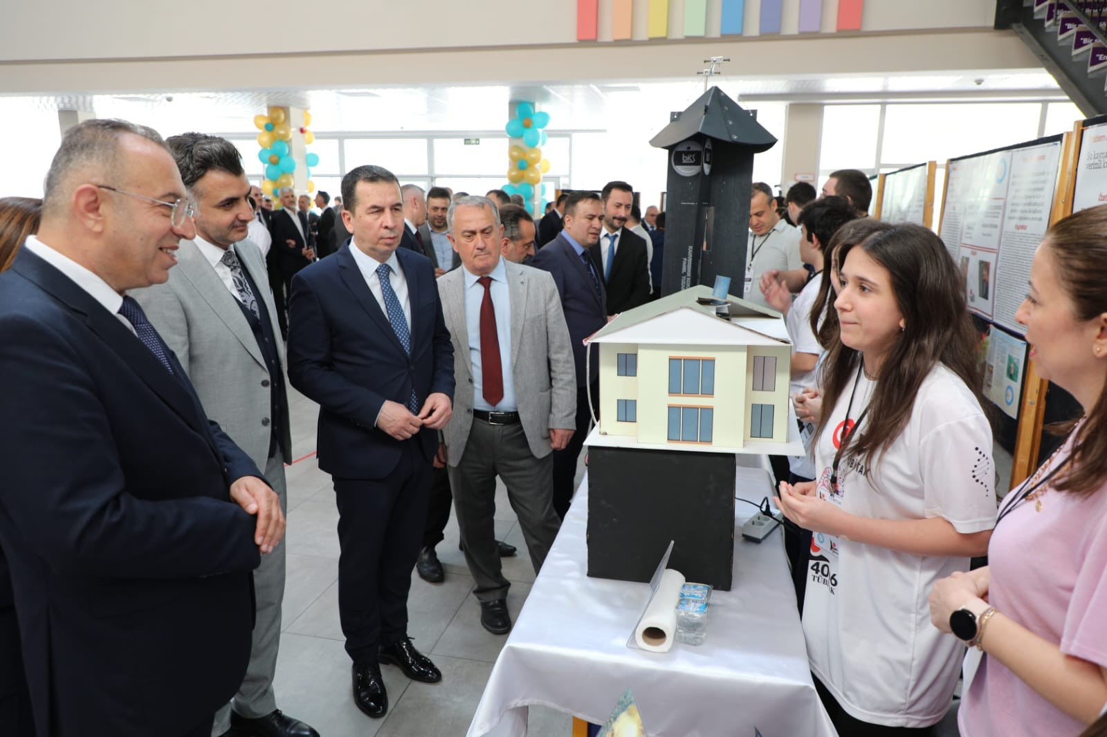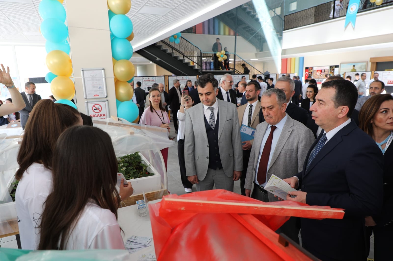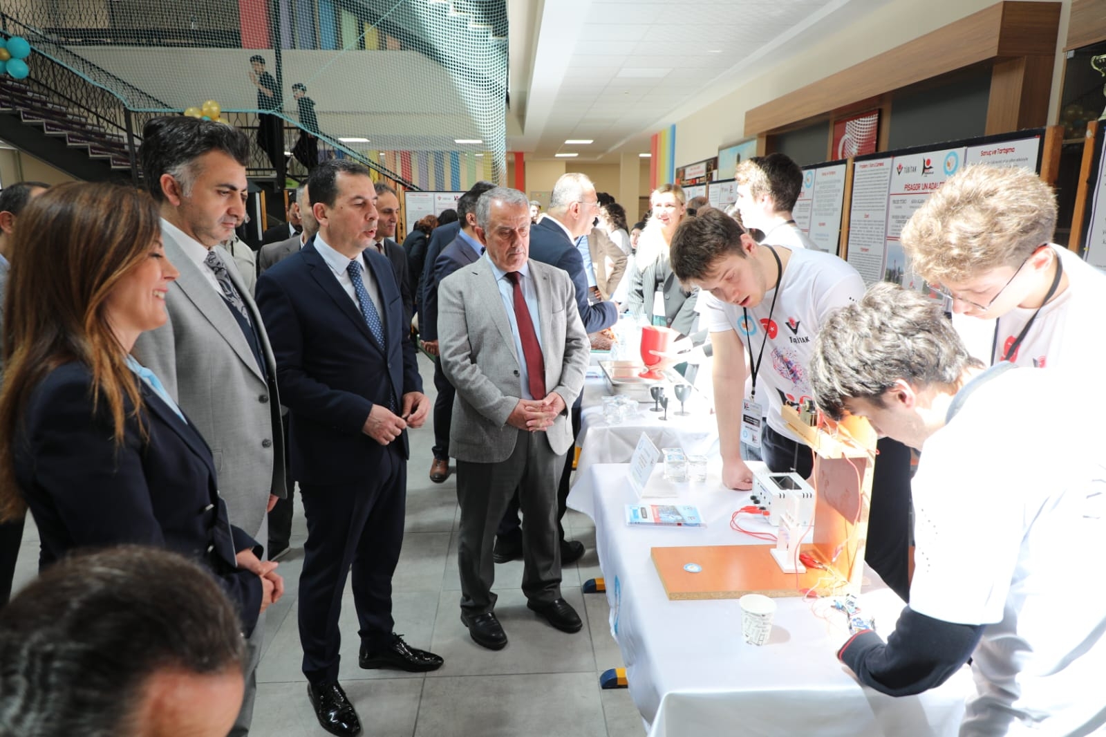 Çeşitli alanlarda toplam 19 projenin sergilendiği fuarda, 14 öğretmenimizin danışmanlığında 58 öğrencimiz sunumlarını gerçekleştirdiler.