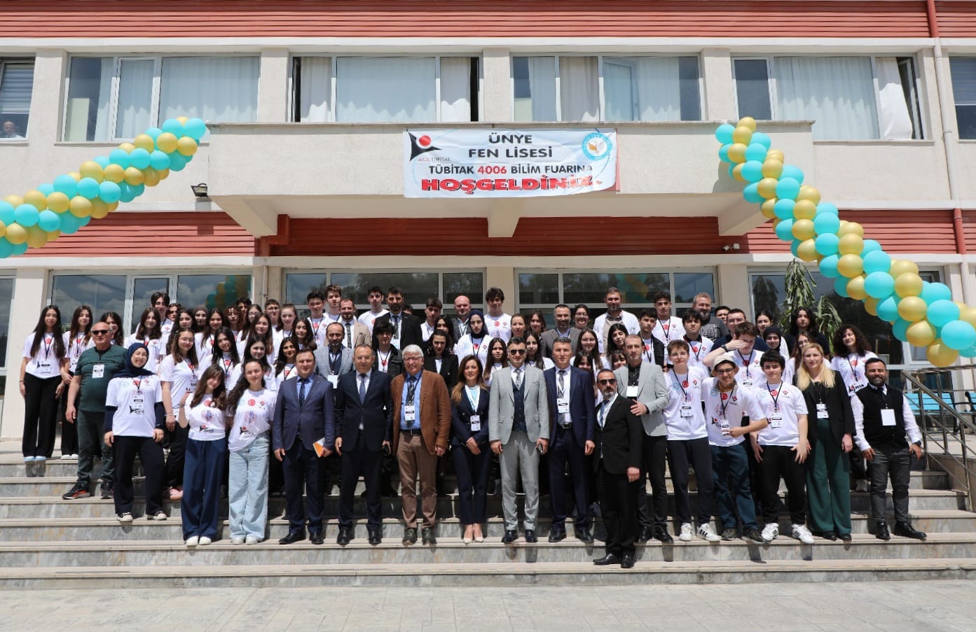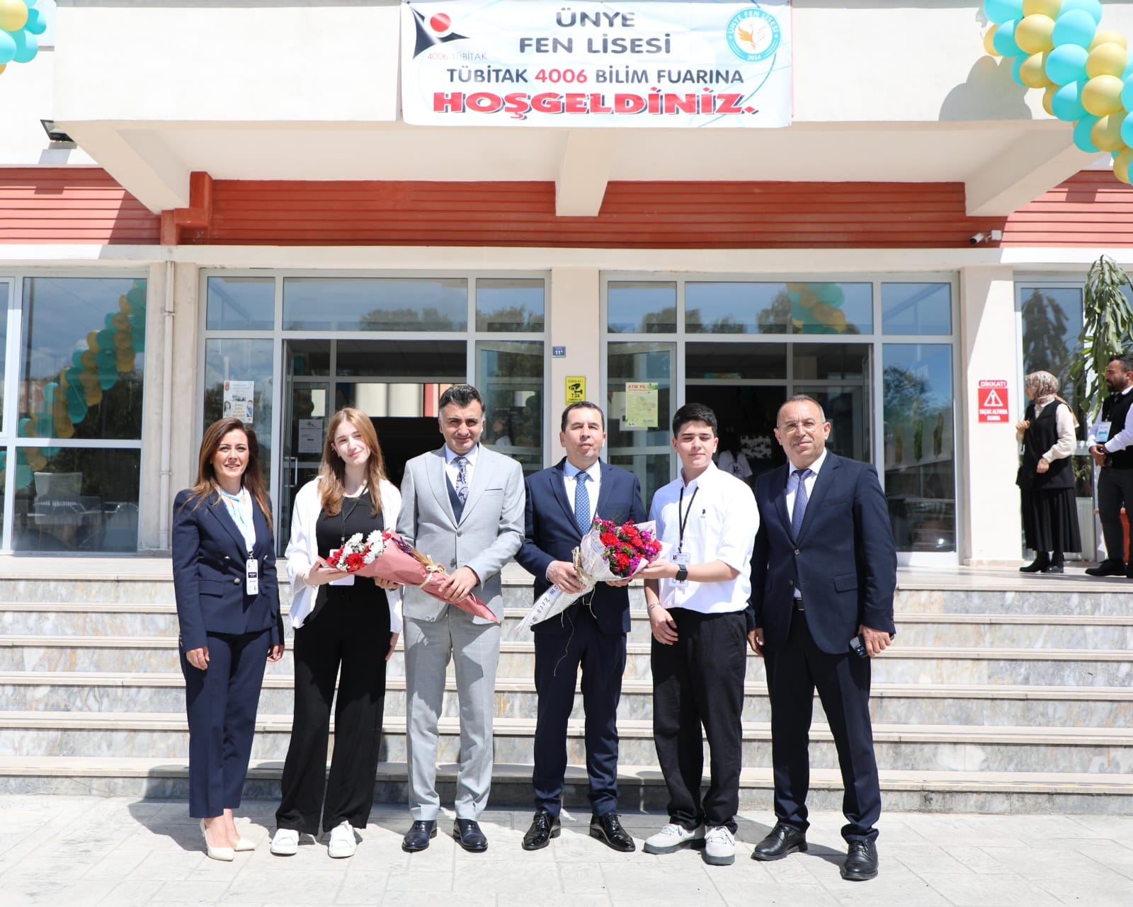 Ünye Kaymakamımız Sn Ayhan Işık, Belediye Başkan Vekilimiz Sn Orhan Gürel, İl Millî Eğitim Müdürümüz Sn Mehmet Fatih Vargeloğlu, İlçe Milli Eğitim Müdürümüz Sn Murtaza Alan, Şube Müdürlerimiz, okul idarecilerimiz, öğretmenlerimiz ve öğrencilerimizin katılımlarıyla Ünye Fen Lisemizde TÜBİTAK 4006 Bilim Fuarı Açılışı gerçekleştirildi.